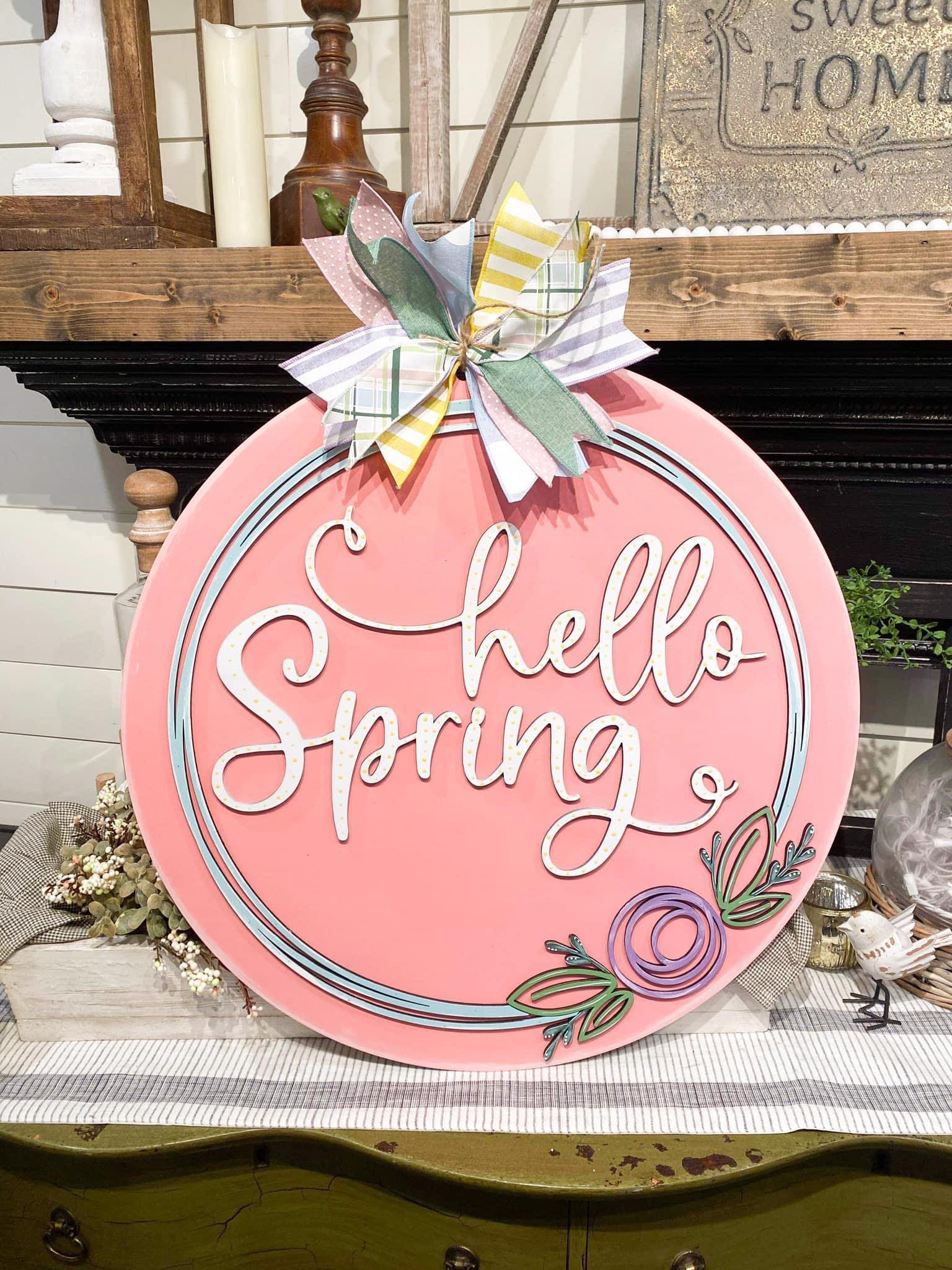 3D Door hanger Hello Spring with Circle Border and Flower