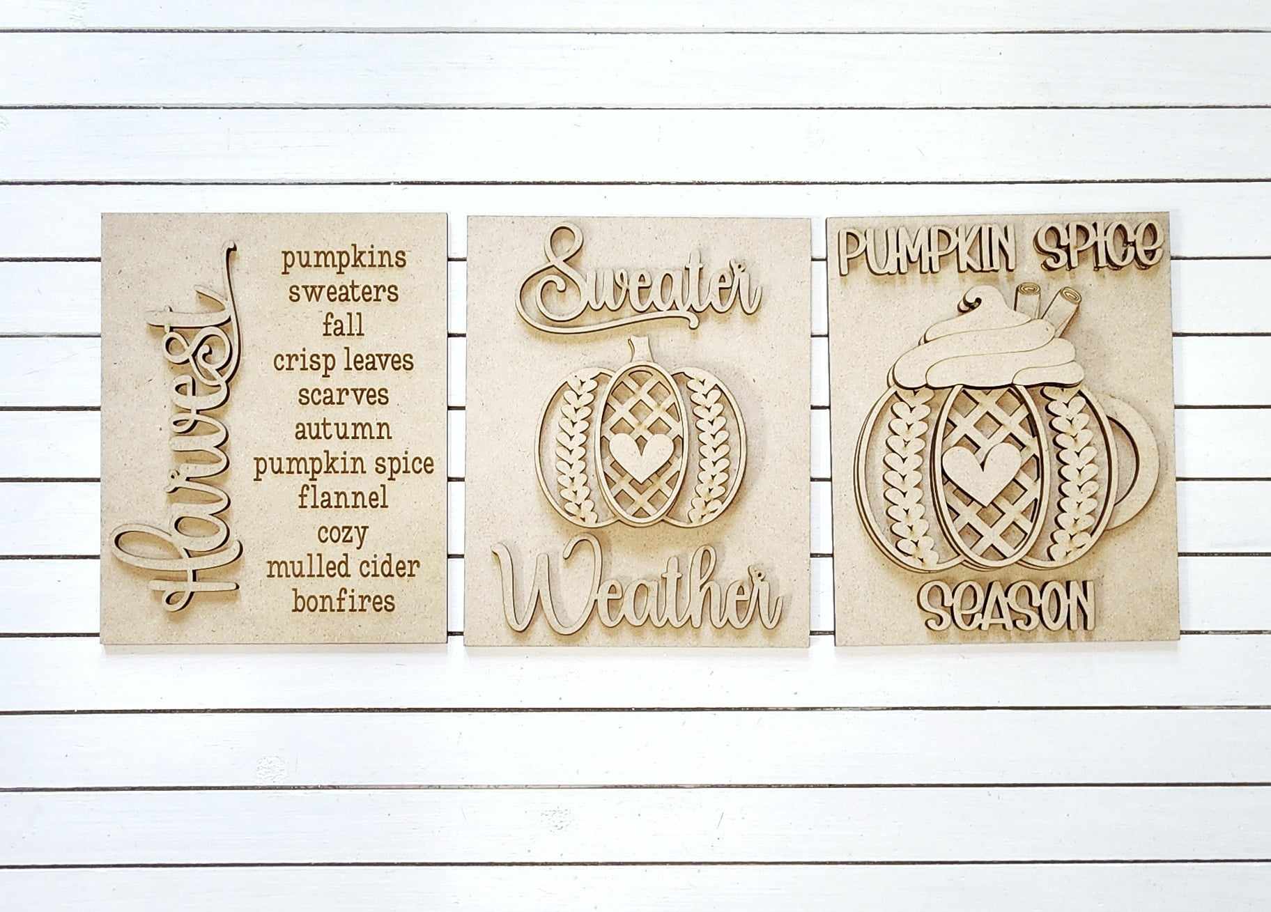 All signs, words, and shapes are unfinished and ready to paint. The words and shapes are laser cut so all edges will be dark brown to black with smooth edges. Some burn marks may appear on the backside.